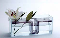 Réduire 2 besoins de contenance en une. Exceller dans un jeu graphique d'opposition entre aspect végétal des tiges et l'aspect linéaire et froid des matériaux.